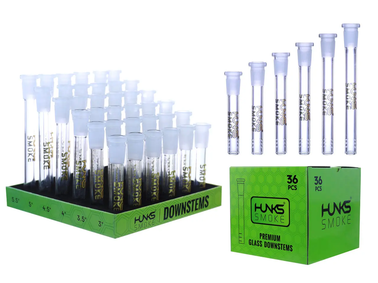 HUNKS SMOKE PREMIUM 14MM MIX CLEAR DOWNSTEMS 36CT DS-01