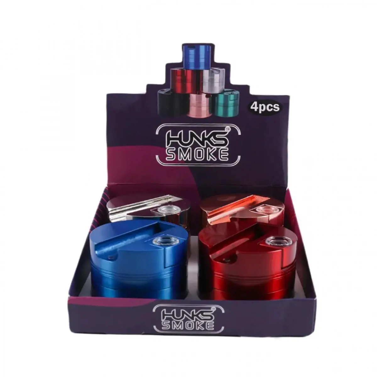 HUNKS SMOKE PREMIUM ALUMINIUM GRINDER WITH PIPE GT-156BB 4CT