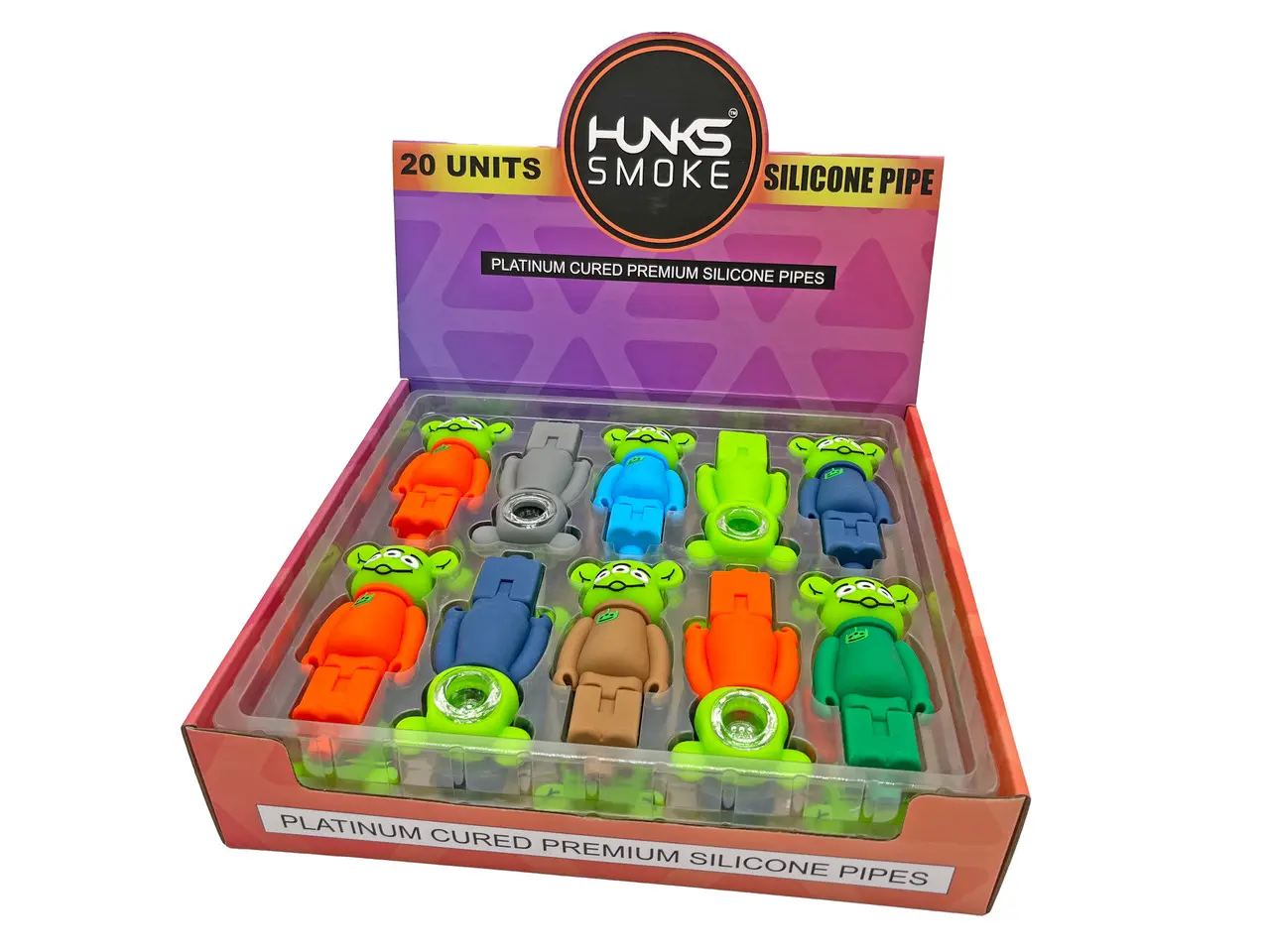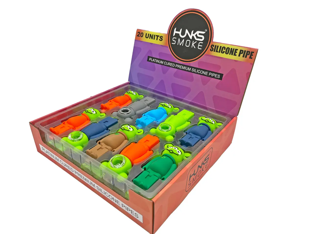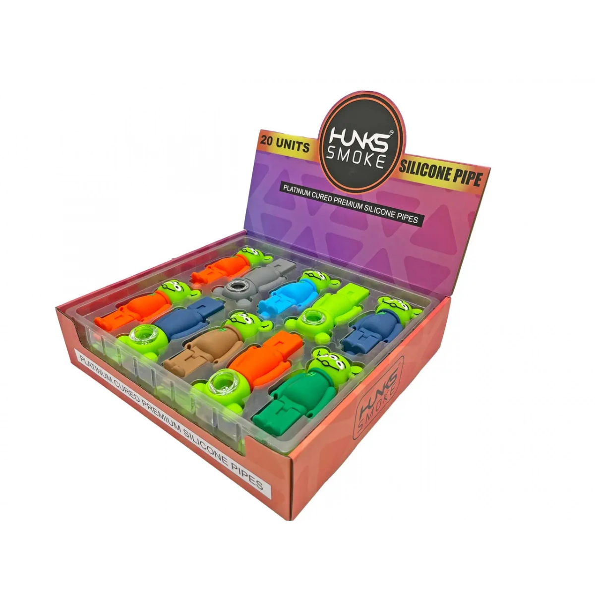 HUNKS SMOKE SILICONE ALIEN HAND PIPE 20CT