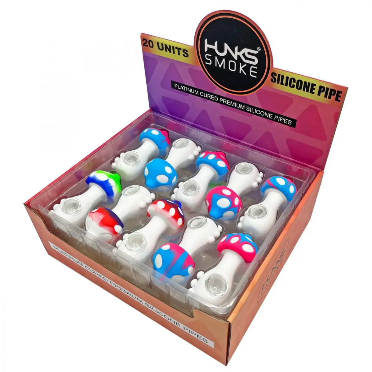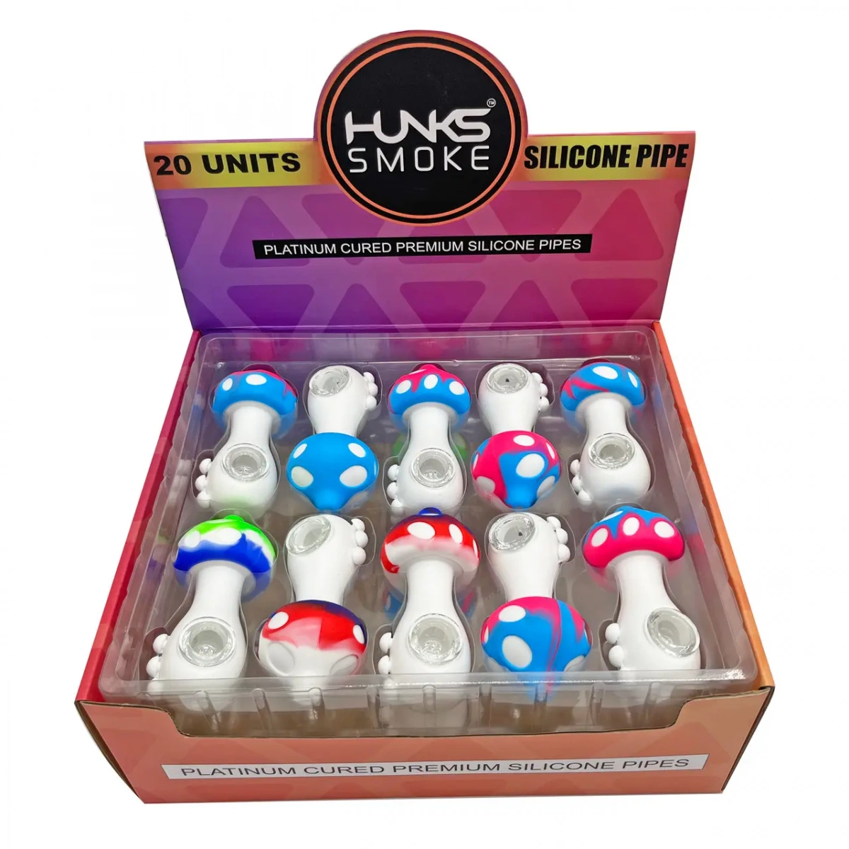 HUNKS SMOKE SILICONE MUSHROOM HAND PIPE 20CT